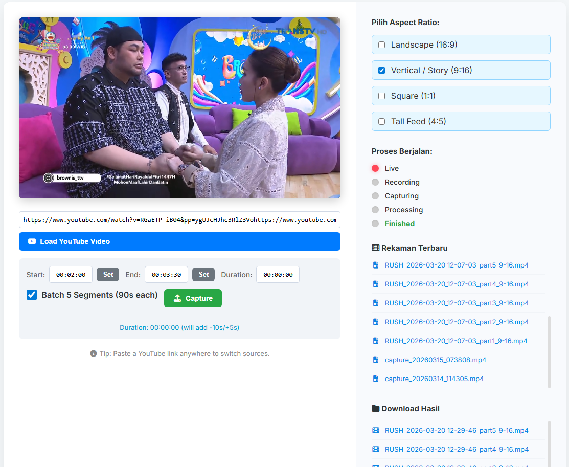 A web-based system for automatically cutting long YouTube videos into short vertical clips with intelligent face tracking and framing.