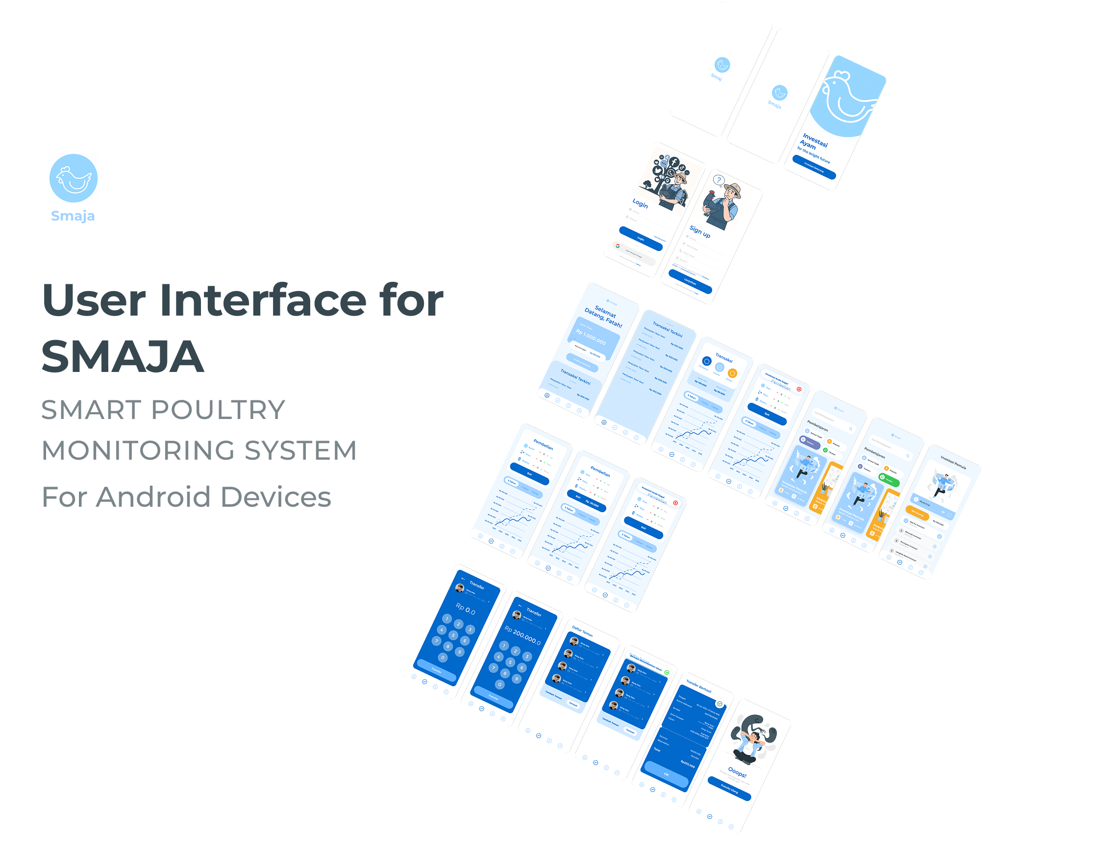A mobile user interface design for poultry investment and monitoring, built for Android platforms.