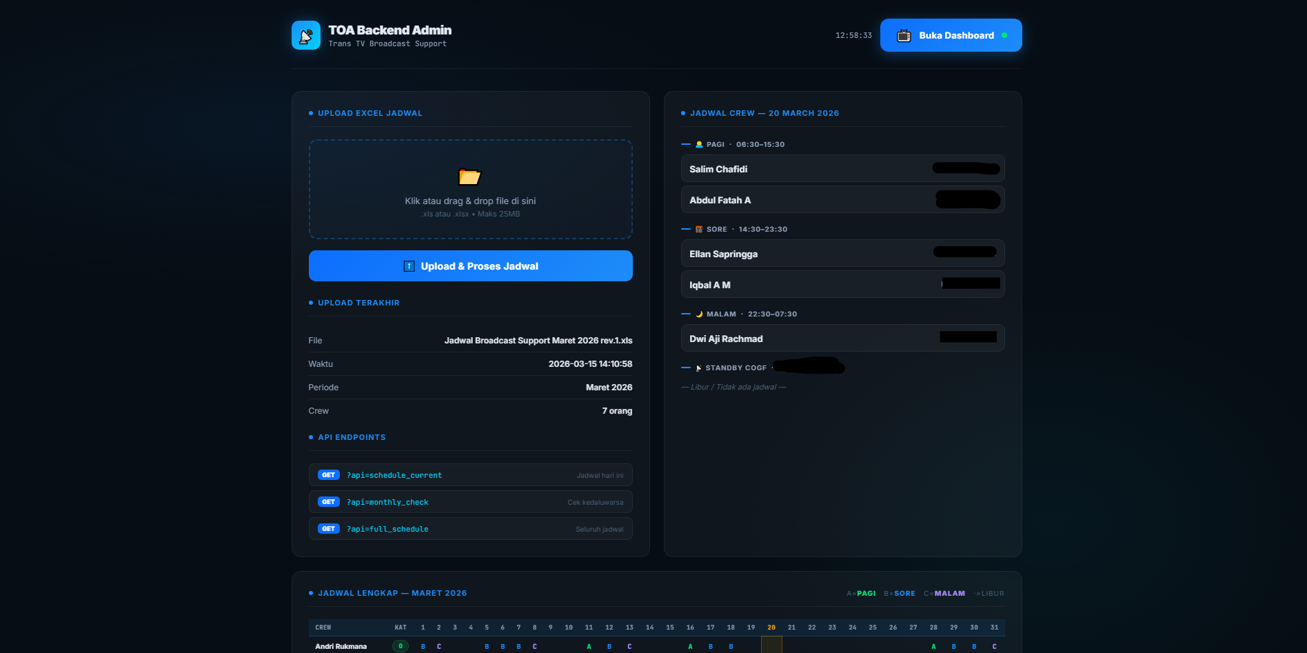 This project presents a full-stack internal website developed to support Technical Operation Support teams by providing real-time access to crew shift schedules and operational information. The system is designed to centralize scheduling data, improve coordination, and ensure accurate information flow across departments.